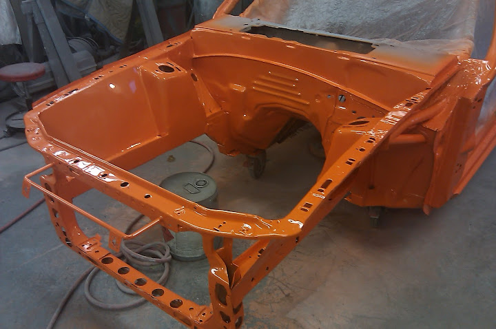 If all goes well, it will get some orange on the door jambs and engine compartment Monday evening.
